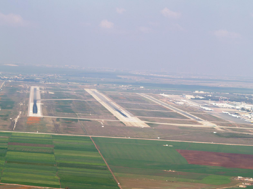 Runway 35L with runway 35R (designated for take offs) adjacent and the terminal and taxiway on the extreme right (reproduced from the Official Report)