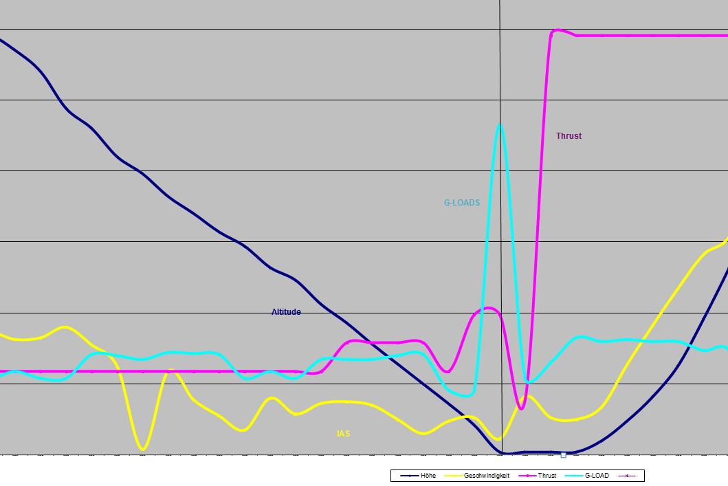 - During the initial runway contact, which occurred wings level but with the thrust recorded as still at 60%, a 2.24g loading was recorded increasing to a maximum of 3.32 g within ¼ second. Thrust was reduced to idle and after a further ¼ second, the aircraft began a bounce and thereafter, the recorded g loading began to reduce.