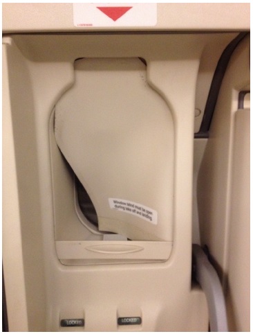 After arrival at Baku, the skin of door 3L was found to be torn and bent backwards at the top left hand corner of the door and the window blind on the door was observed to have collapsed. The illustrations below show this. According to Airbus, this was the first record of such a door skin failure since the start of A380 operations.