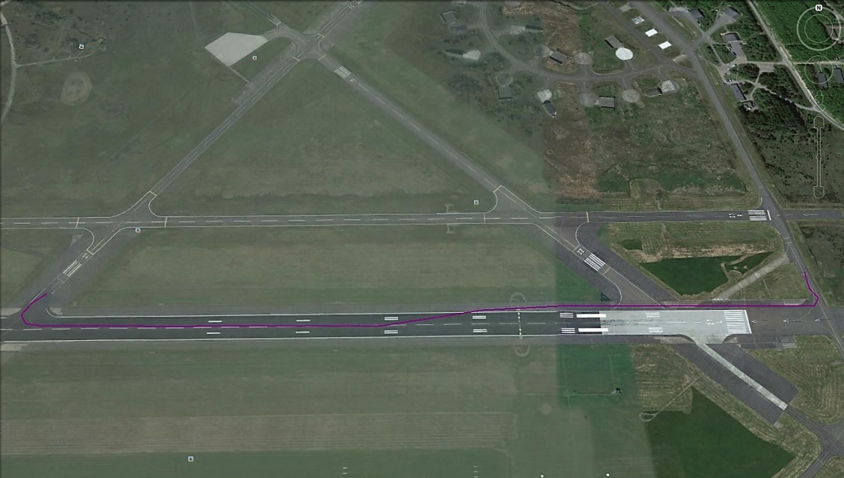 It was established that the aircraft had taxied south from the departure parking position at the joint military/civil aerodrome passing the threshold of runway 27R before reaching the holding point for runway 27L and reporting there to TWR, who then cleared the aircraft for take-off with the RVR given as 1,700 metres for the first third and 1,600 metres at the midpoint with fog being reported in the current METAR. The TWR controller requested and received confirmation from the aircraft crew that the brightness of the runway lights was "about right”. The Captain had begun taxiing onto the runway without following the unlit lead-on line which would have taken the aircraft onto the centreline and instead made a “sharp right turn” to line up on what he thought was the lit runway 27L centreline but was an alignment of the aircraft with the lights marking the northern edge of the runway. As this positioning was taking place, the First Officer was reading the 13 challenge and response items on the ‘Before Takeoff Checklist’ that included a “runway heading and GPS alignment check” which “was performed without remarks”. Whilst slowly taxiing on the runway prior to the displaced landing threshold, the aircraft nose landing gear then hit a (red) runway right hand edge light but this was not noticed and the Captain began to advance the power levers to the take-off position which was confirmed set 7 seconds later. As the aircraft gathered speed, the crew reported having heard “a thumping noise from the nose gear” and in response, the Captain had “re-aligned the nose gear slightly to the left to prevent the nose gear hitting what the flight crew thought were the recessed runway centre line lights”. Only when the aircraft approached a military arrester cable mechanism located to the right-hand side of the runway did the Captain realise that the aircraft was lined up on the runway edge lights instead of the runway centreline lights and 20 seconds after beginning to set take-off power, he rejected the take-off and simultaneously manoeuvred the aircraft onto the runway centreline. TWR were advised and it was decided that the aircraft should be taxied back to the apron. The ground track followed by the aircraft is shown on the illustration below.