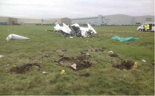 When the aircraft was below 50 feet and about to land on runway 22 in benign weather conditions after a flight of almost three hours, a number of witnesses on the ground reported a range of observations that collectively indicated that the aircraft had suddenly been seen to drift left of the runway before an aircraft control problem followed by abnormal noises from the engines became evident. The aircraft was described as appearing briefly unstable before the left wing dropped, the aircraft rolled rapidly to the left and struck the ground nose first. Both occupants were found trapped in the wreckage but alive but one died at the scene and the other shortly afterwards.