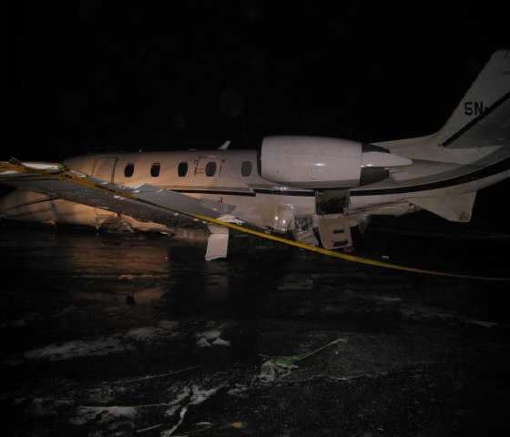 On 14 July 2011, a Cessna Citation 560XLS (5N-BMM) being operated by Bristow Helicopters Nigeria on a company passenger flight from Lagos to Port Harcourt left the side of the landing runway shortly after a high impact night touchdown in reportedly normal ground visibility. The aircraft hit the ground hard and shortly afterwards made a rapid turn through 90˚ before stopping. It sustained substantial damage and two of the four passengers received minor injuries. The crew did not communicate with ATC after the crash and even after the AFS had been alerted, it took some time to locate the aircraft and render assistance to the occupants who had all walked clear of the aircraft. The AFS found that the crew had left the right hand engine running when they evacuated the aircraft and used their high pressure water hoses to shut it down.