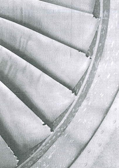 Some of the damaged left-hand engine fan blades. [Reproduced from the Official Report]