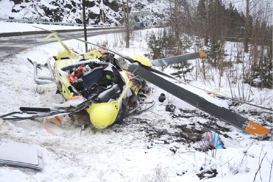 On 14 January 2014, the crew of an Airbus Helicopters EC135 P2+ (LN-OOI) being operated by Norsk Luftambulanse from its base at Lørenskog to the site of a road traffic accident at Sollihøgda in day Visual Meteorological Conditions (VMC) failed to see a power line whilst descending to land near the accident and after main rotor damage was sustained during unintended contact, the helicopter descended rapidly to the ground out of control. Two of the three occupants were killed and a third seriously injured due to the severe impact. The helicopter was completely destroyed and slight damage was caused to a car which was hit by one of the severed power lines.