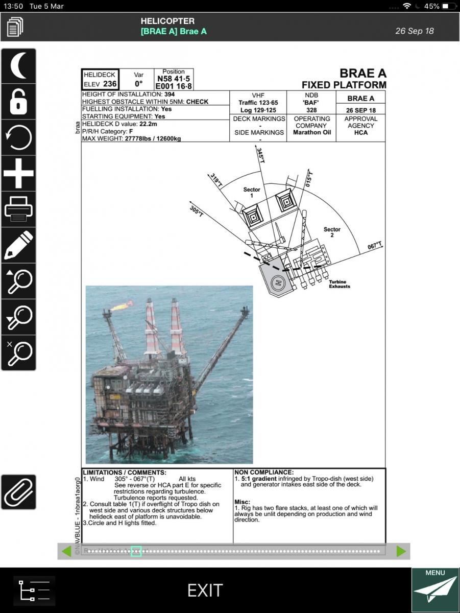 The Investigation noted that the HD information was supplemented in electronic form by an EFB (iPad mini) loaded with proprietary offshore platform information equivalent to that contained in the hard copy HD which, at the time of the investigated event, was also available in hard copy form.
