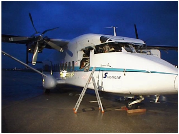 The SD330 showing flight deck damage caused by the impact of the MD83 outer wing [Reproduced from the Official Report]