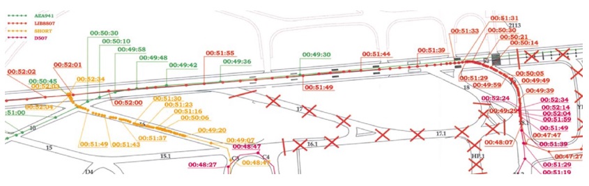 The taxiways serving runway 27 departures showing those out of service (X) [Reproduced from the Official Report]