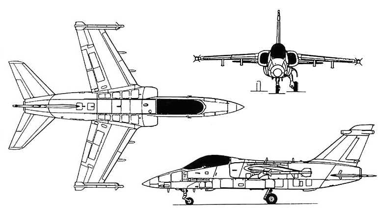 Light attack aircraft / trainer. In service since 1988. Replacement of G91 and F-104 for Italian Air Force and MB-326 Xavante for Brazilia Air Force. Two-seat trainer version AMX-T.