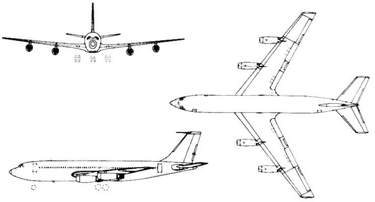 Medium to long range airliner/freighter. In service since 1958. First member of BOEINGs 707 production serie. First models with turbojets, later re-engined with JT3D turbofans. C-137/CC-137 military freighter version. The B701 is member of the B707 family of aircraft.