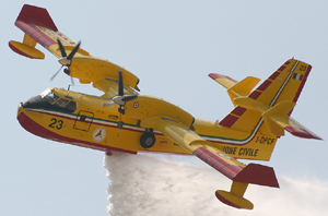 The Bombardier 415 Superscooper (formerly Canadair CL-415 SuperScooper) is a Canadian amphibious aircraft purpose-built as a water bomber. It is an aircraft designed and built specifically for aerial firefighting and is based on the company's CL-215 flying boat. It is marketed in the United States as the Superscooper.