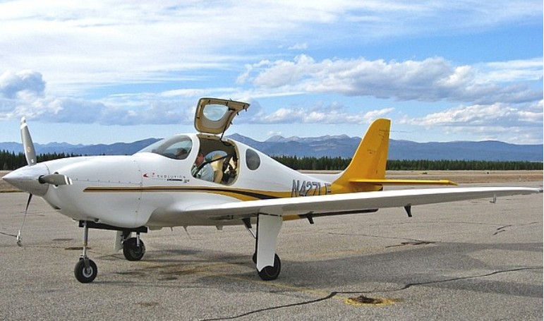 The Lancair Evolution is an American pressurized, low wing, four-place, single-engined aircraft, made from carbon fiber composite, developed by Lancair and available as an amateur-built kit.