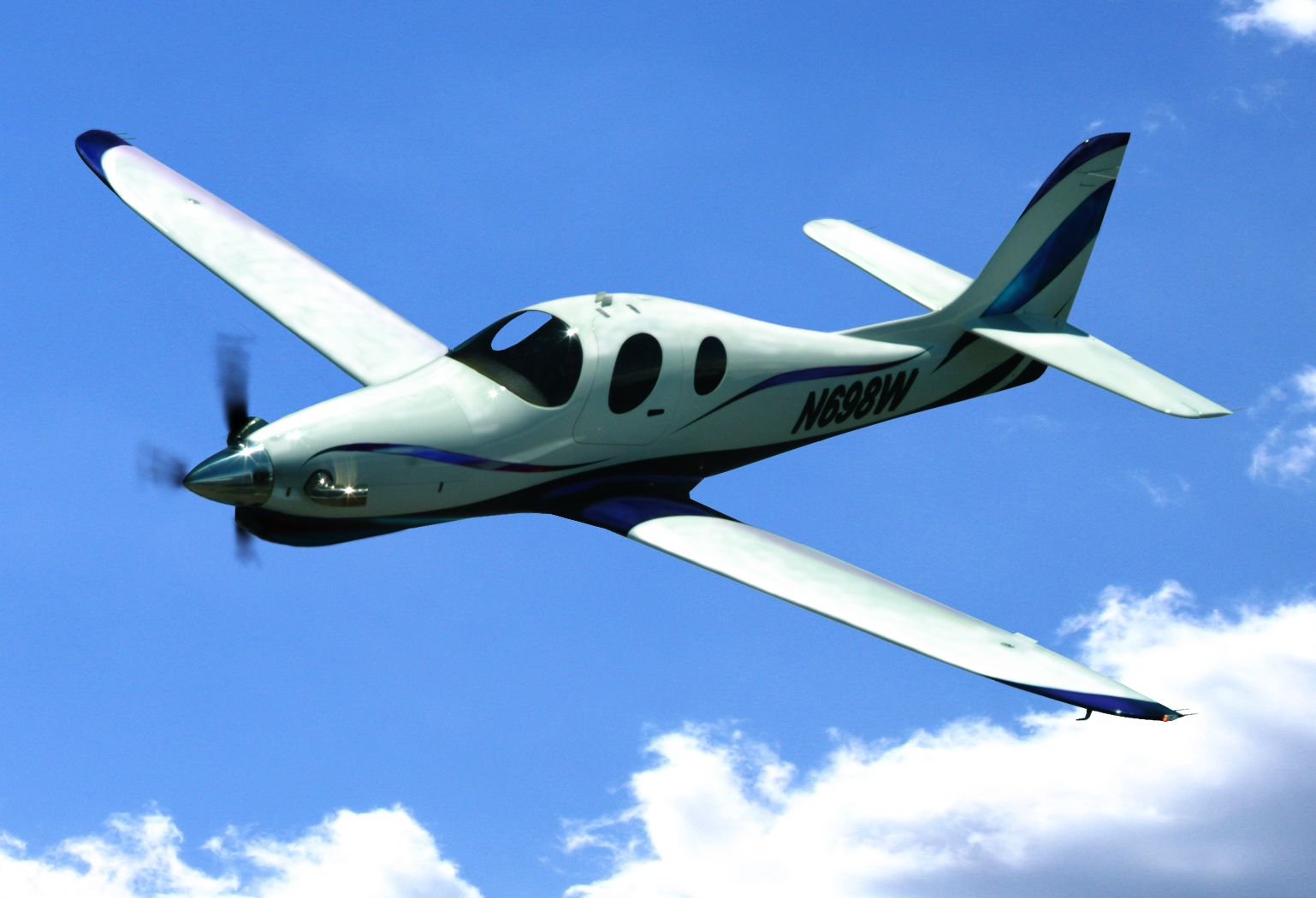 The Lancair Evolution is an American pressurized, low wing, four-place, single-engined aircraft, made from carbon fiber composite, developed by Lancair and available as an amateur-built kit.