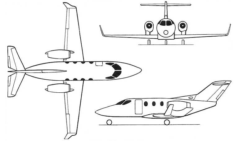 Small sized business jet with over-the-wing podded engine configuration. Electronic Flight Instrument System cockpit.