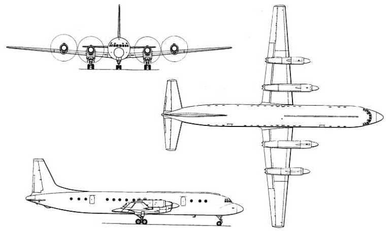 Medium range turboprop airliner and military transporter. In service since 1959. Developed in some versions: IL-18 to IL-18E civil versions, IL-18 military VIP and general transport, IL-20 Elint platform and IL-22 command post. Naval adaption IL-38 May for maritime patrol/AW, with stretched fuselage and forward mounted wings. More than 600 aircraft were built, approx. 50 remain in commercial service.
