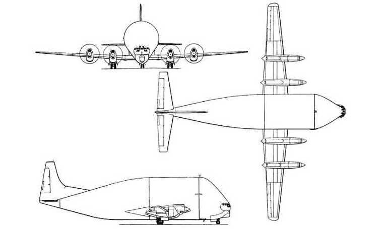 - Aero Spacelines B-377-SG Super Guppy – Prototype of a much enlarged version of the guppy using C-97J components, powered by four Pratt & Whitney T-34-P-7WA turbo-prop engines.