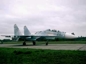 All weather air-superiority fighter, ground attack aircraft and combat trainer. In service since 1984. Built in many series: Su-27P air defence fighter, Su-27S (Su-27SK for export) multi role version with wing tip and EW pods, Su-30 two seat operational trainer, Su-30M (Su-30MK for export) two seat defence fighter and Su-33 air defence fighter for Russia´s Navy. Improved multi role fighter developments Su-27M (redesignated to Su-35) and thrust vectoring Su-37 with fly-by-wire flight control system. Highly agile aircraft used by the Russian, Belarus and Ukainean Air Forces in Europe, by the Chineese, Indian and Vietnamese Air Forces in Asia and Ethiopean Air Force in Africa.