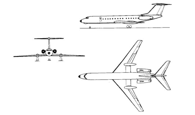 Short range airliner. In service since 1964. Short range airliner development based on TU-124 (initially designated TU-124A). Built in a few versions: