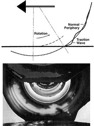 The mechanism of traction wave and a picture of a tyre subject to traction wave