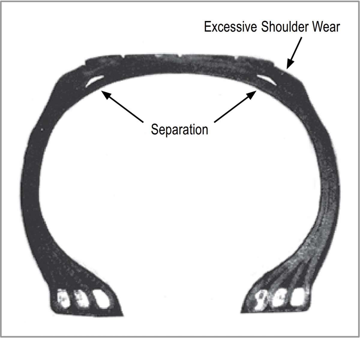 - Tread Cuts - inspect tread for cuts and other foreign object damage and mark with crayon or chalk. Manufacturer's removal criteria should be followed.