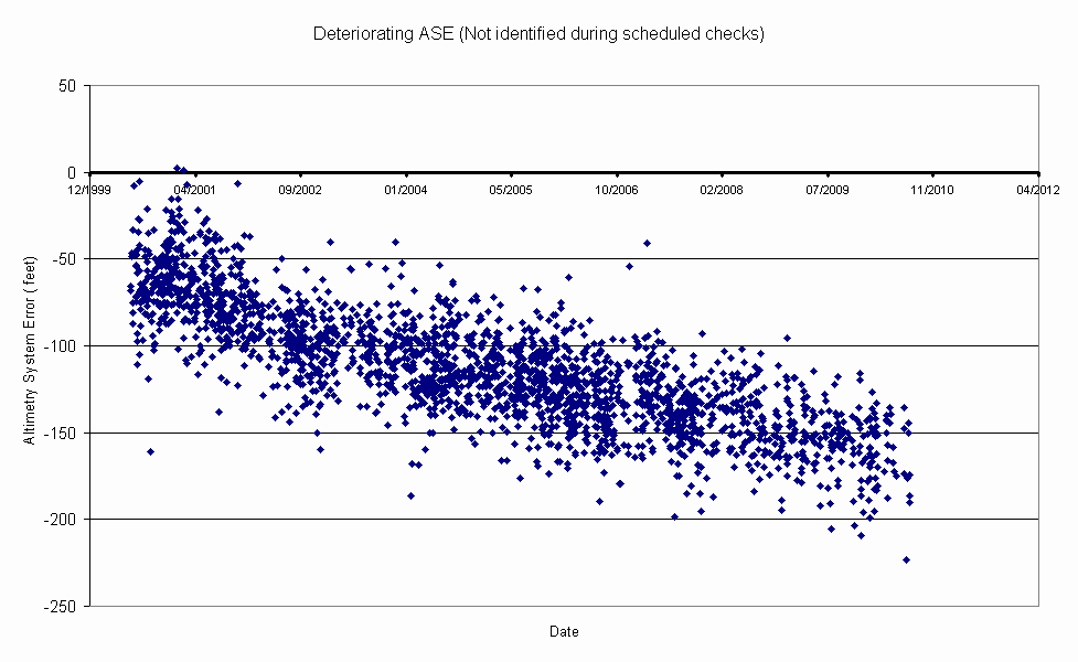 One of the original assumptions about Altimetry System Error was that it was stable over time, i.e. the ASE characteristics of an aircraft would be constant. Once confirmed as compliant with international standards there should be no requirement for the ASE to be re-evaluated, providing that the configuration of the aircraft remained the same. It is only since the evolution of practical height monitoring systems that the real picture has emerged and the evidence suggests that the facts may in some cases be significantly different to the theory.