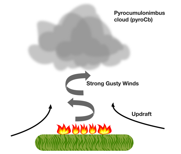Formation mechanism of a pyroCB as a result from a fire-storm.