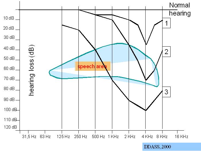 Approximately 10 percent of the population in industrialized societies has significant hearing loss. Pathological effects of noise on hearing are known as a Permanent Threshold Shift (PTS), meaning the threshold of hearing has permanently increased. One of the difficulties of detecting PTS is that in the early stages a person may not be aware of any issues. Figure 10 shows that at an early stage (Curve 1) speech is not affected and the person is still able to hear others speak. At this stage, only a specialized exam (audiogram) is able to detect the problem. As PTS increases as depicted by Curves 2 and 3, the hearing loss affects speech intelligibility, and the person starts to be aware that there is an issue.