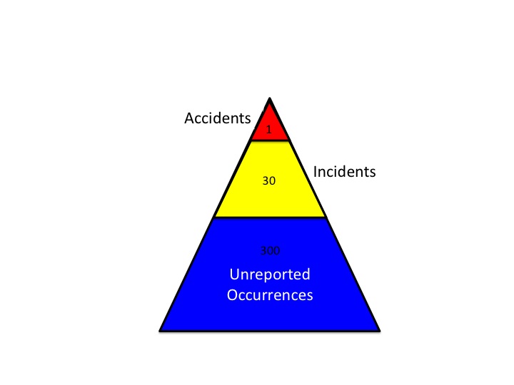 This is commonly depicted as a pyramid (in this case with the number of minor incidents shown as 30 for simplicity):