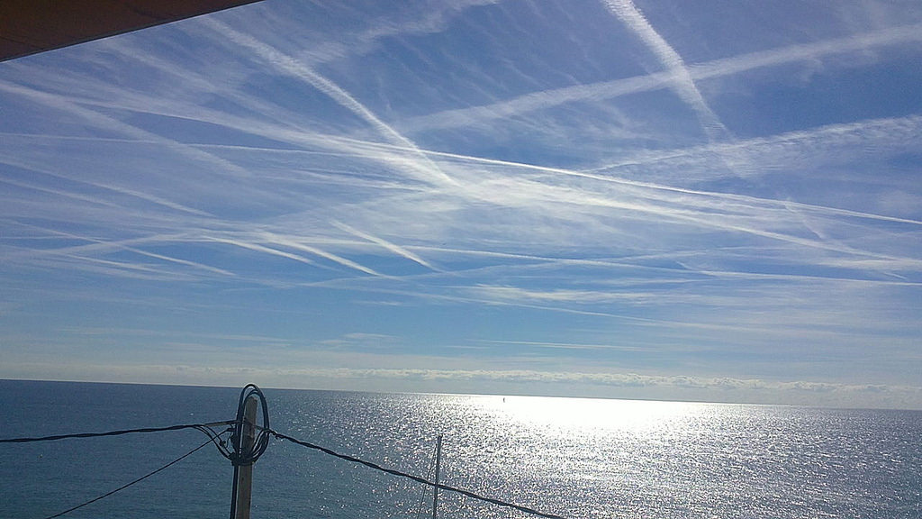 Both of these types can be seen in the image below. The thinner, more distinct contrails are the more recent homogenitus. The less distinct cloud in the distance, and at the top of the picture, are the homomutatus clouds formed as the contrails develop into more widespread cirrus clouds.