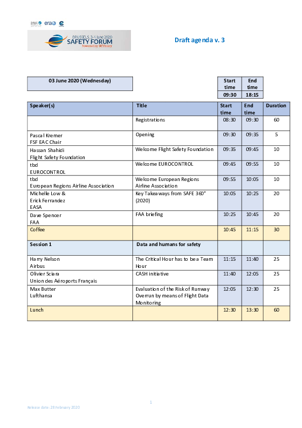 2020 Safety Forum Agenda