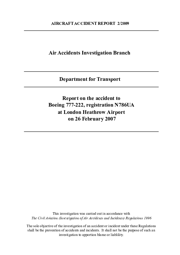 AAIB Aircraft Accident Report 2/2009 - Boeing 777-222, N786UA, at London Heathrow 26 Feb 2007