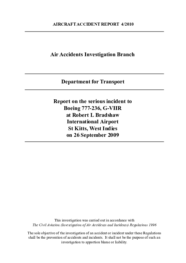 AAIB Aircraft Accident Report 4/2010: Serious Incident Boeing 777-200, G-VIIR, St Kitts WI, 26 S