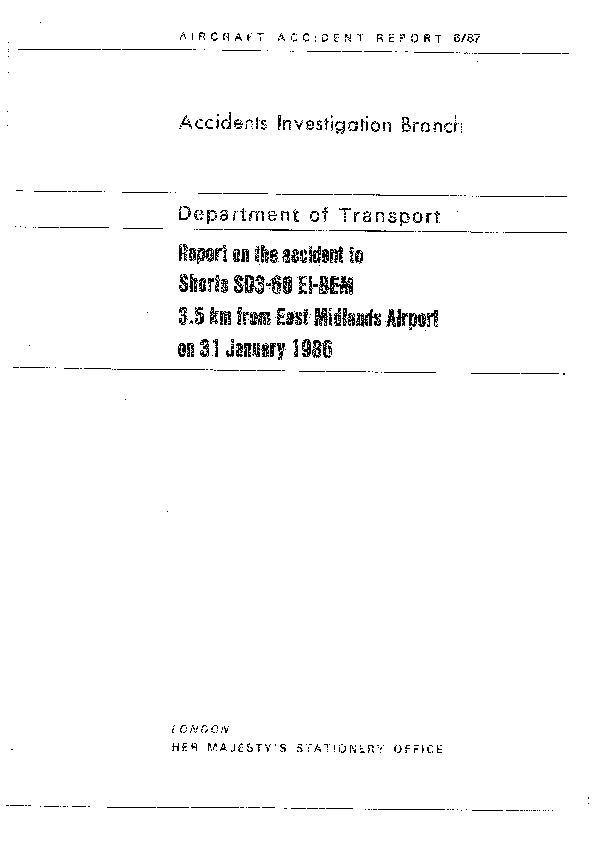 AAIB Aircraft Accident Report 6/87, Shorts SD3-60, EI-BEM, East Midlands Airport, 31 January 1986