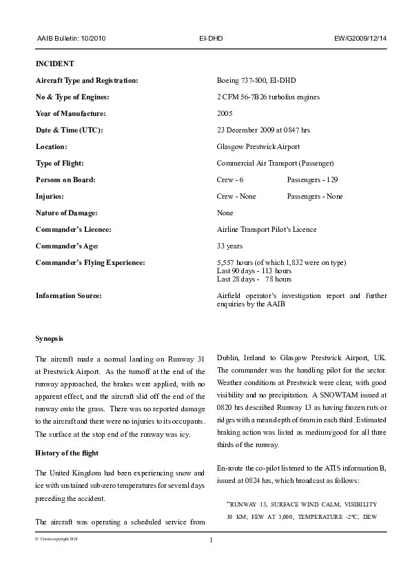 AAIB Bulletin 10/2010 EW/G2009/12/14, Boeing 737-800, EI-DHD, Prestwick UK, 23 Dec 2009