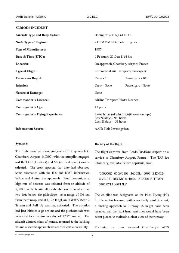 AAIB Bulletin 12/2010 EW/C2010/02/03, Boeing 737-33A, G-CELC, approach Chambery France, 7 Feb 20