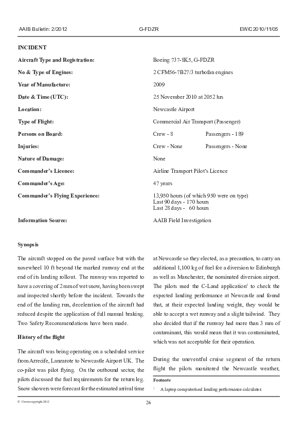 AAIB Bulletin 2/2012 EW/C2010/11/05, Boeing 737-8K5, G-FDZR, Newcastle Airport UK, 25 Nov 2010