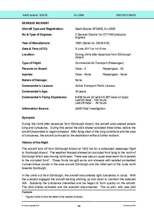 AAIB Bulletin: 3/2018 G-LGNB EW/C2017/06/03 SF34 en route north of Edinburgh UK, 5 June 2017