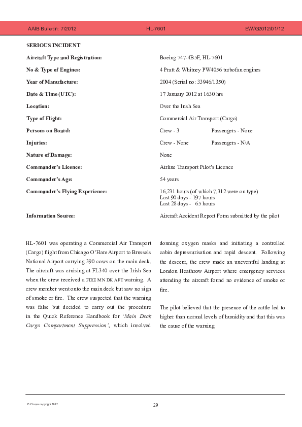AAIB Bulletin 7/2012 EW/G2012/01/12, Boeing 747-4B5F, HL-7061, over the Irish Sea, 17 Jan 2012