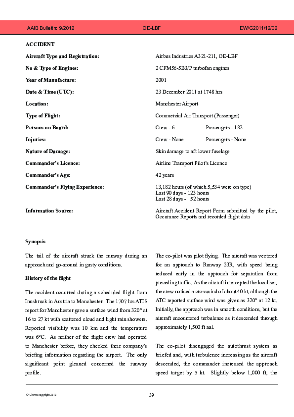 AAIB Bulletin 9/2012 EW/G2011/12/02, Airbus A321-211, OE-LBF, Manchester, 23 Dec 2011