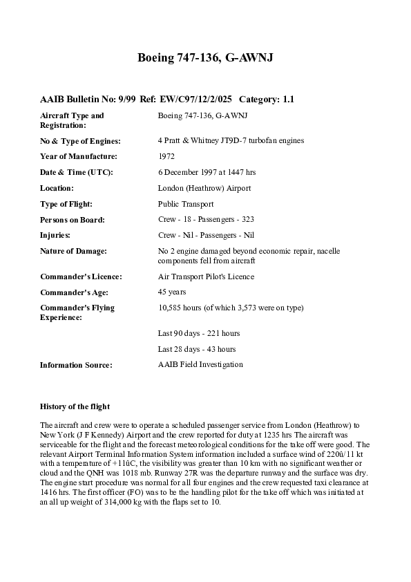 AAIB Bulletin 9/99 EW/C97/12/2/025, Boeing 747-136, G-AWNJ, Heathrow, 6 Dec 1997