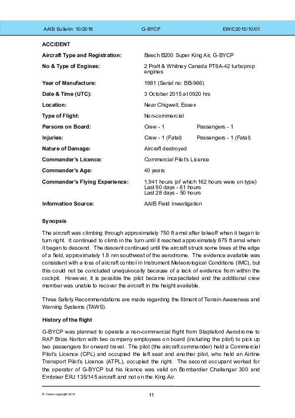 AAIB Bulletin: BE20 (G-BYCP) LoC vicinity Stapleford UK, 3 Oct 2015