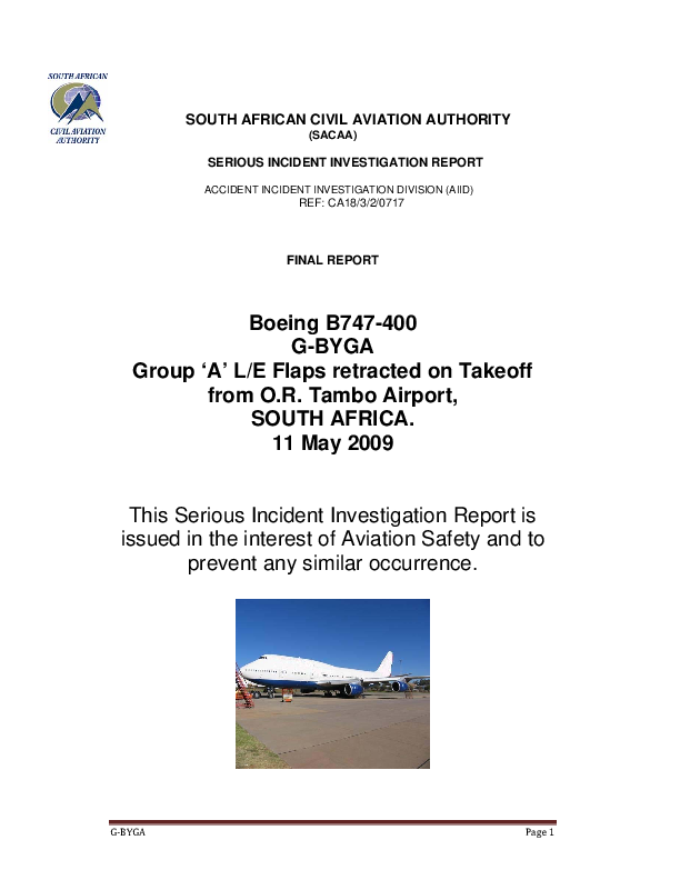 AAID - CA18/3/2/0717 Final Report, Boeing 747-400 G-BYGA Tambo Airport South Africa 11 May 2009