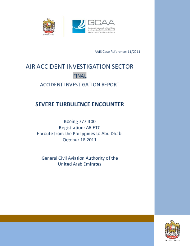 AAIS Case Ref 11/2011, Boeing 777-300, A6-ETC, Severe Turbulence, Bay of Bengal, 18 Oct 2011