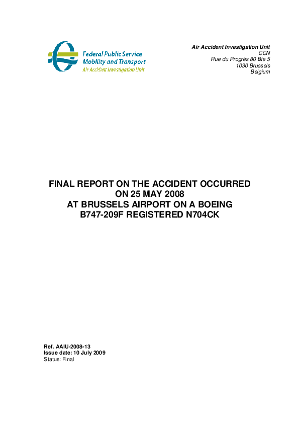 AAIU-2008-13/ Final - B747-209F, N704CK, Brussels Airport, 25 May 2008