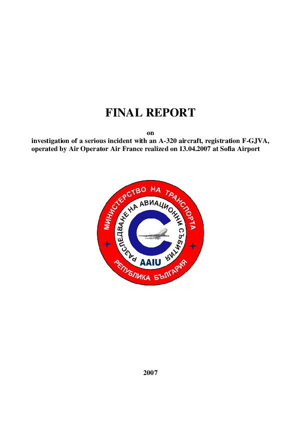 AAIU - Final report, Air France A320, F-GJVA, Sophia, 13 Apr 07