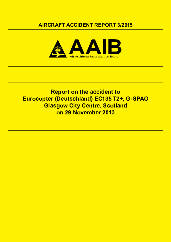AAR3/2015: Report on the accident to Eurocopter (Deutschland) EC135 T2+, G-SPAO Glasgow City Centre