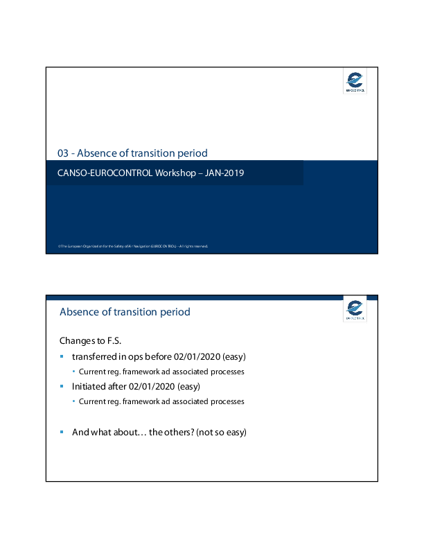 This presentation's aim was to discuss the effects of the absence of transition period and change management procedures.