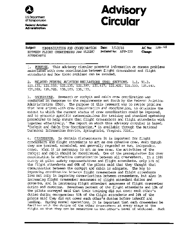 AC 120-48 Communications and Coordination Between Flight Crewmembers and Flight Attendants.