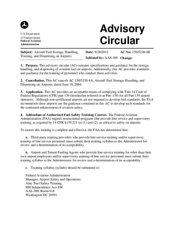 AC 150/5230-4B Aircraft Fuel Storage, Handling, Training and Dispensing on Airports