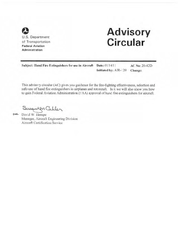 AC 20-42D; Hand Fire Extinguishers for use in Aircraft