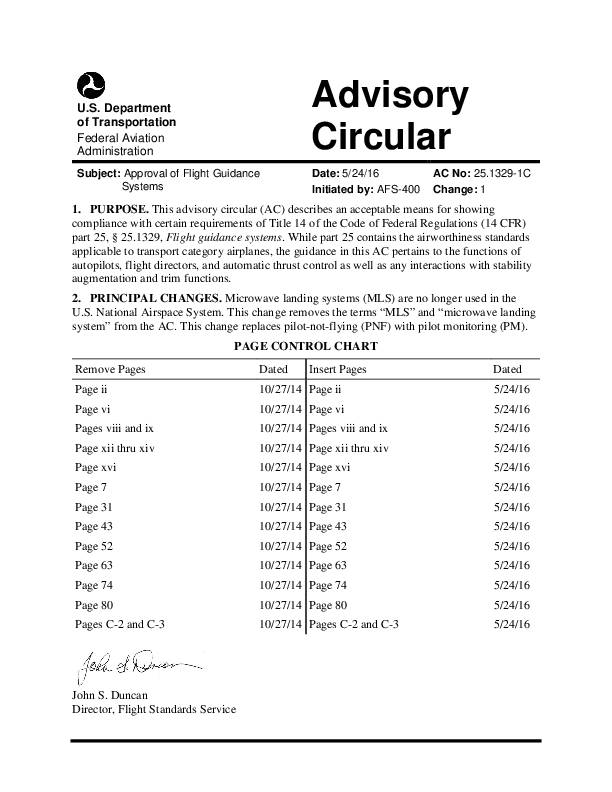 AC 25.1329-1C, incl. Change 1: Approval of Flight Guidance Systems